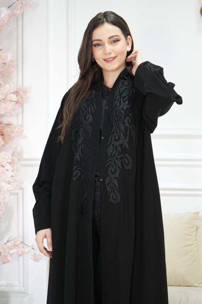 عباية ملكي ياقة تطريز نص – تصميم أنيق وفاخر