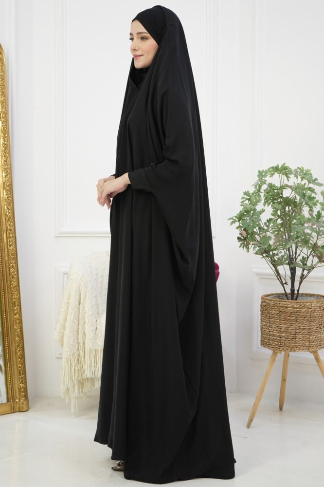 استمتعي بالراحة والحشمة مع عباية بشت رأس بتصميم انسيابي يغطي الجسم بالكامل.