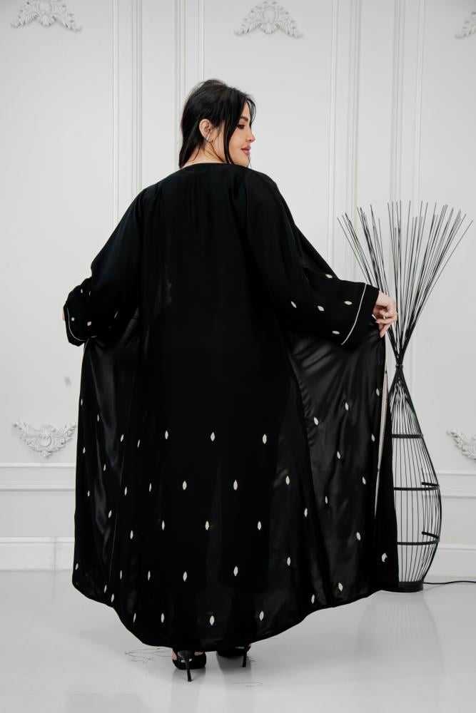 عباية نواعم تطريز كم مع قيطان رصاصي – أناقة يومية