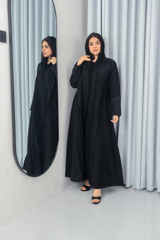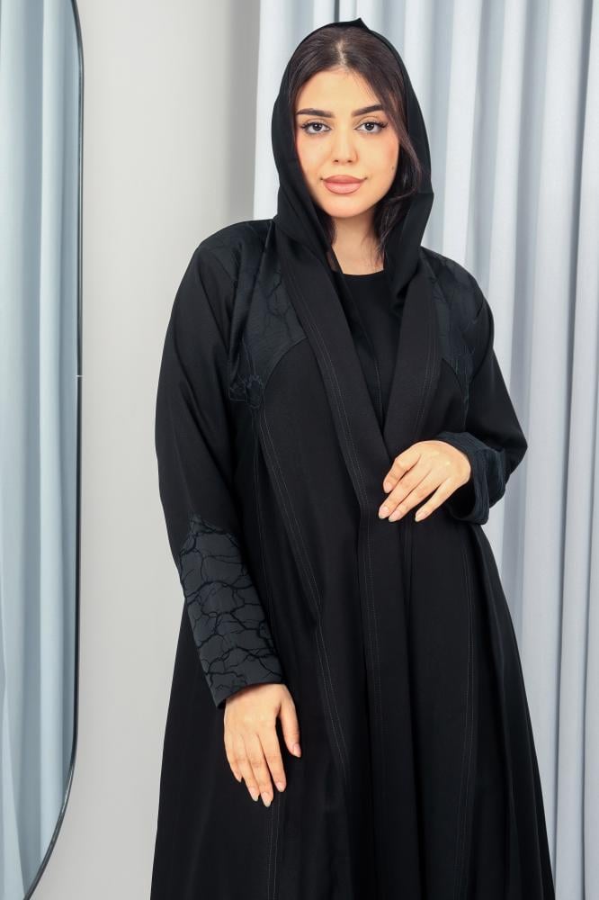✔ اسم الموديل: عباية كتان مع أكمام مشجر