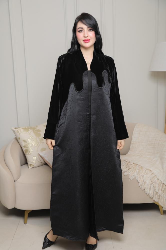 ✨عباية شتوية فخمة بتصميم يجمع بين الجاكار الفاخر والمخمل الملكي، لتمنحك لمسة دفء وأناقة لا مثيل لها.