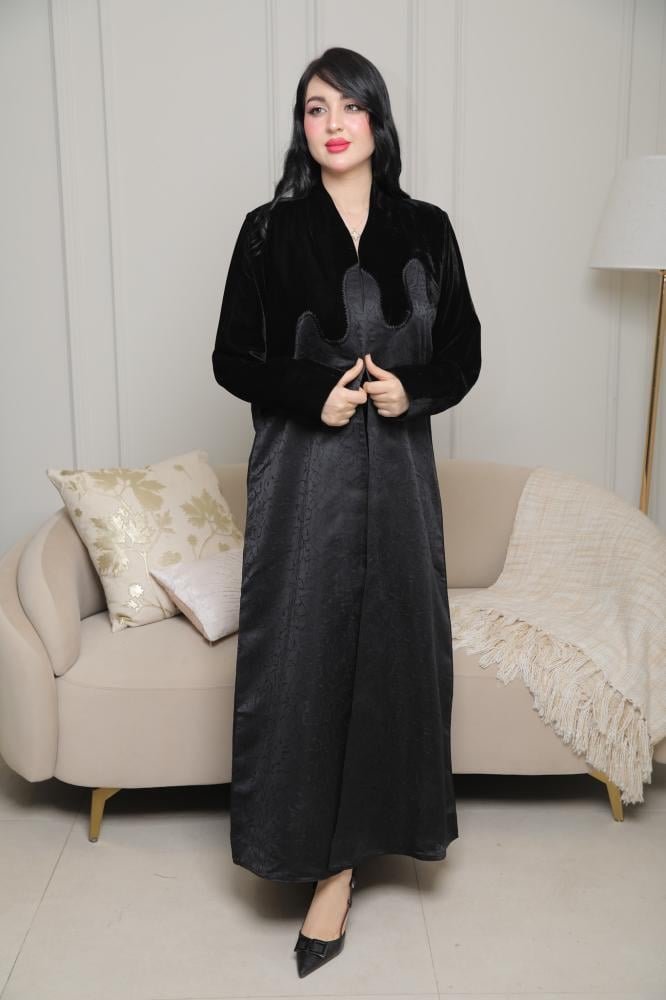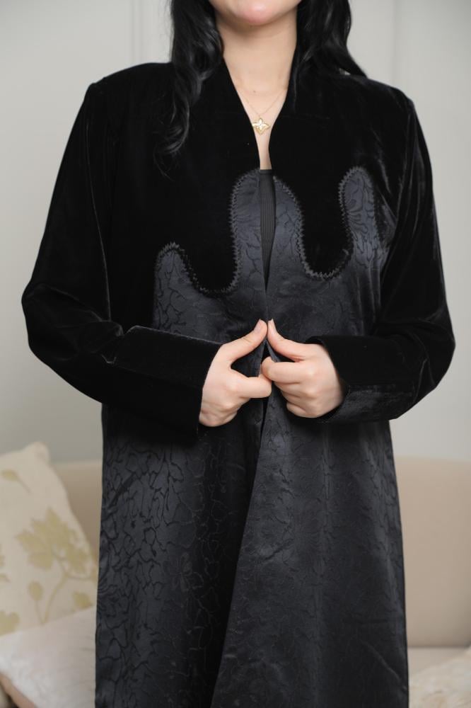 عباية شتوي جاكار ومخمل بتفاصيل متموجة راقية