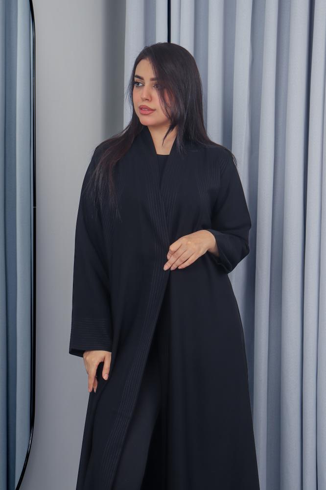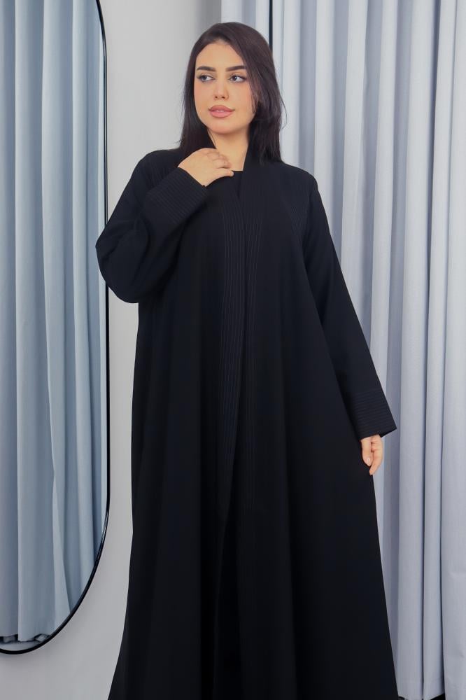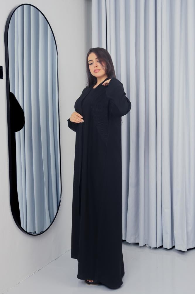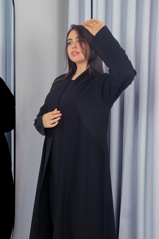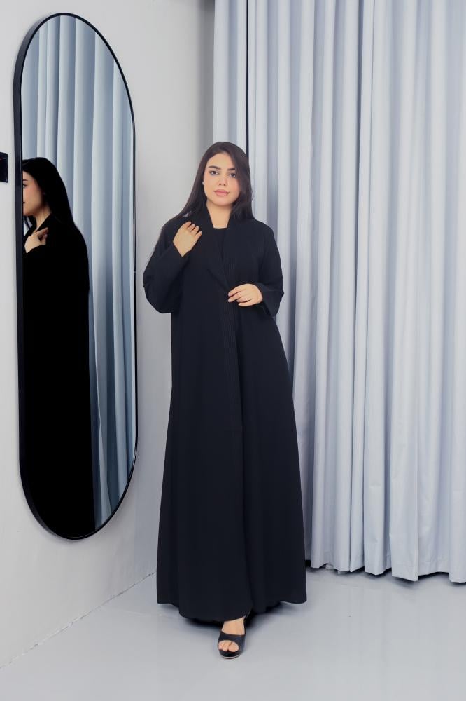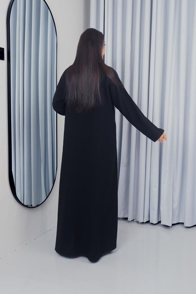تم تصميم هذه العباية من قماش كريب ملكي فاخر عالي الجودة يمنحك انسيابية مميزة وراحة تدوم طوال اليوم. اللون الأسود الكلاسيكي يعزز إطلالتك الرسمية واليومية بأسلوب راقٍ.