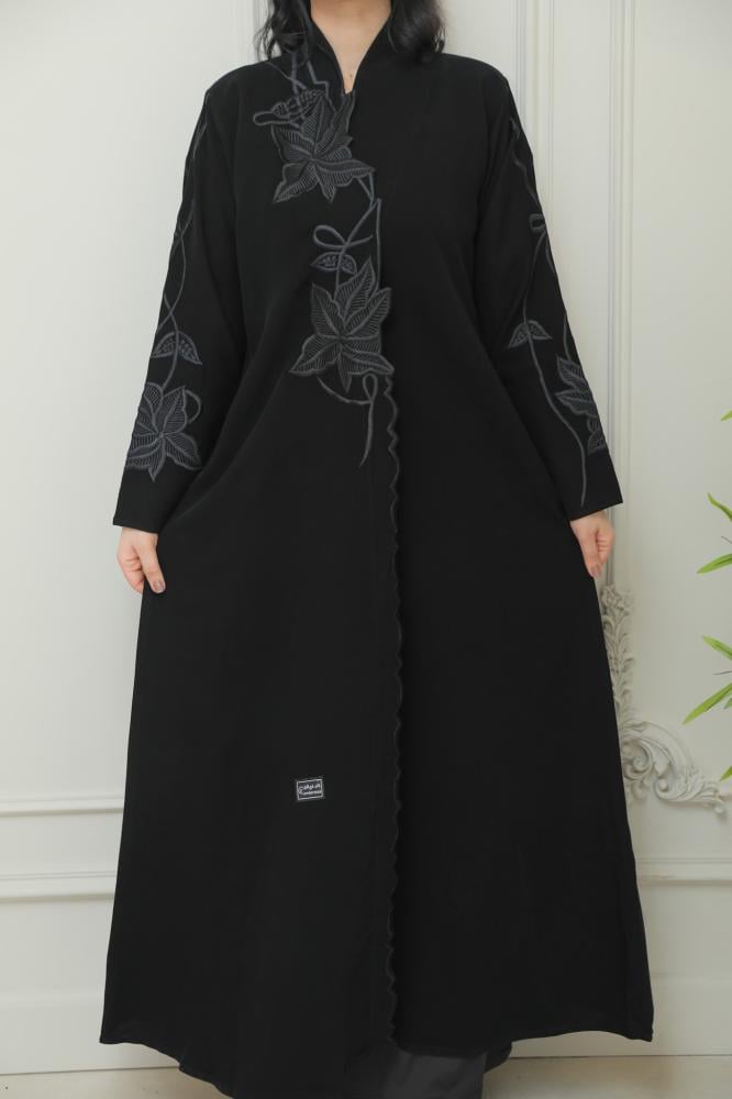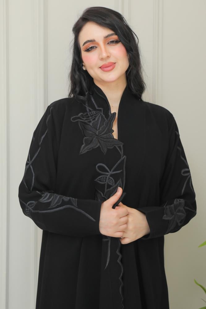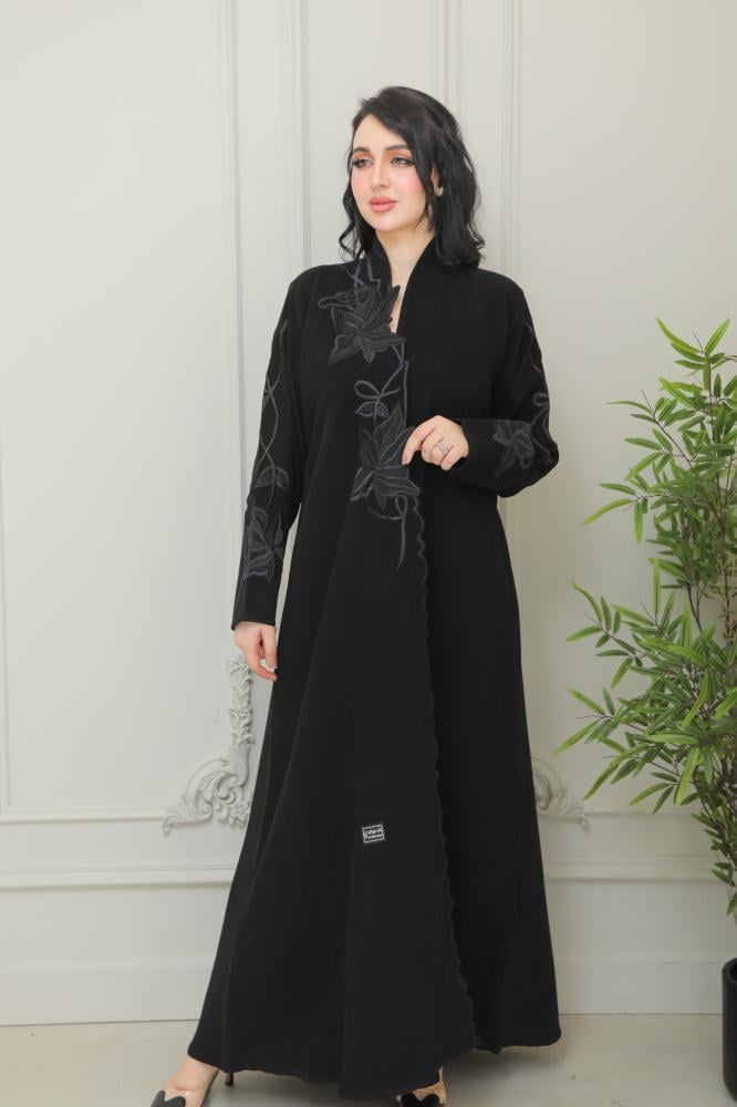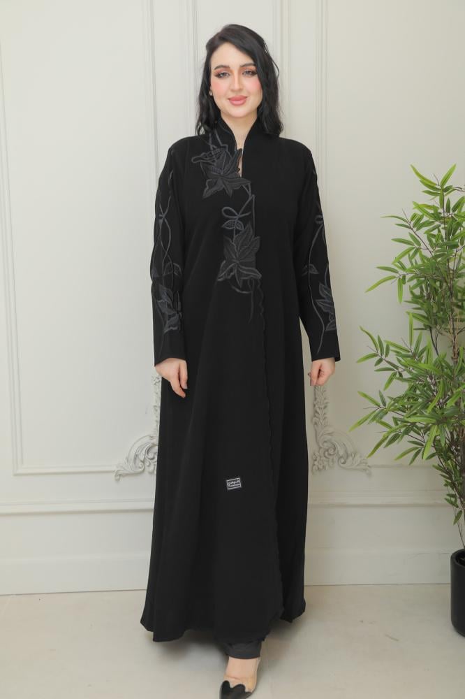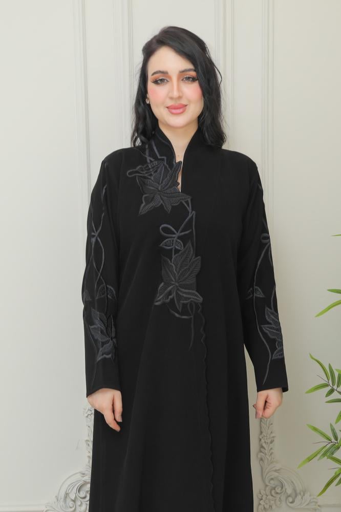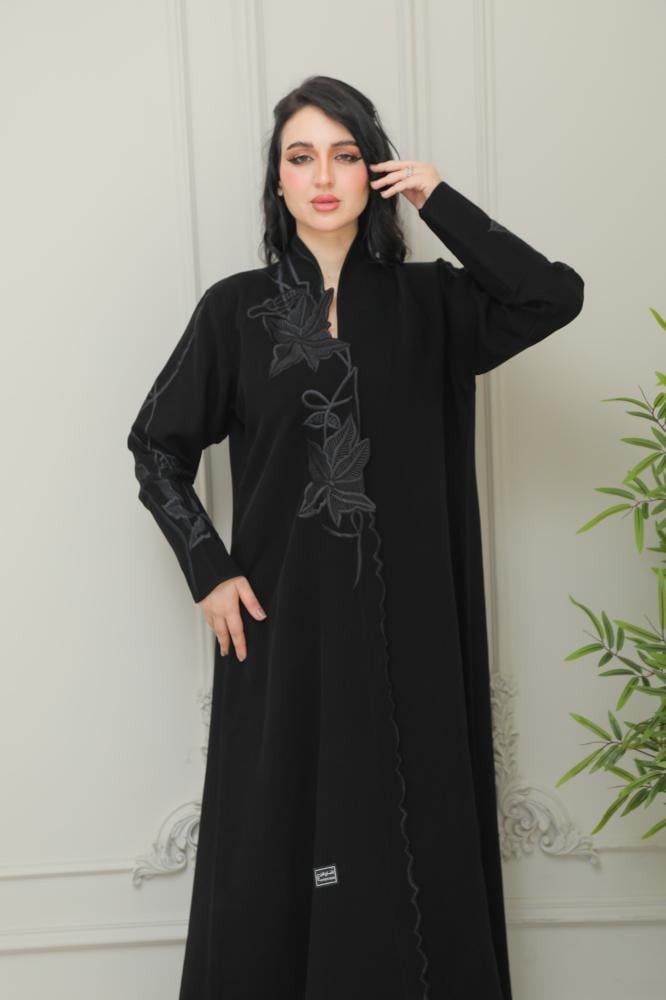 ✨تألقي بإطلالة تجمع بين الأصالة والفخامة مع هذه العباية الفريدة من قماش كريب الرياض الفاخر، المعروف بخفته وأناقة انسيابيته.