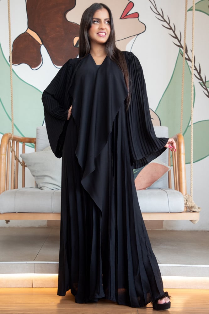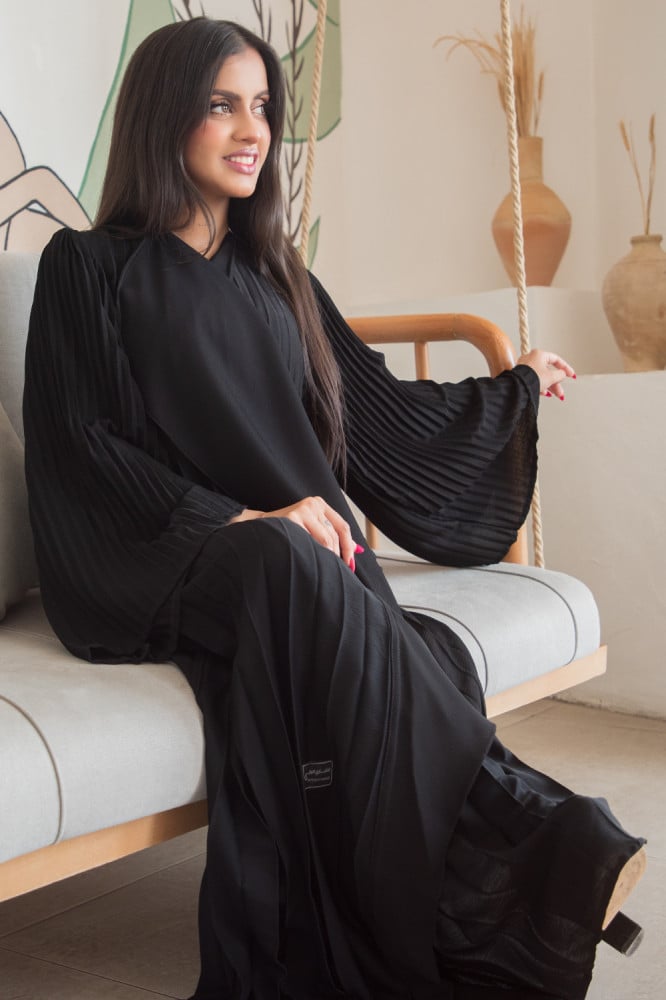 ✨ تميزي بإطلالة عصرية مع عباية زوم سوداء بتصميم كسرات كامل يمنحك انسيابية وأناقة لا مثيل لها.