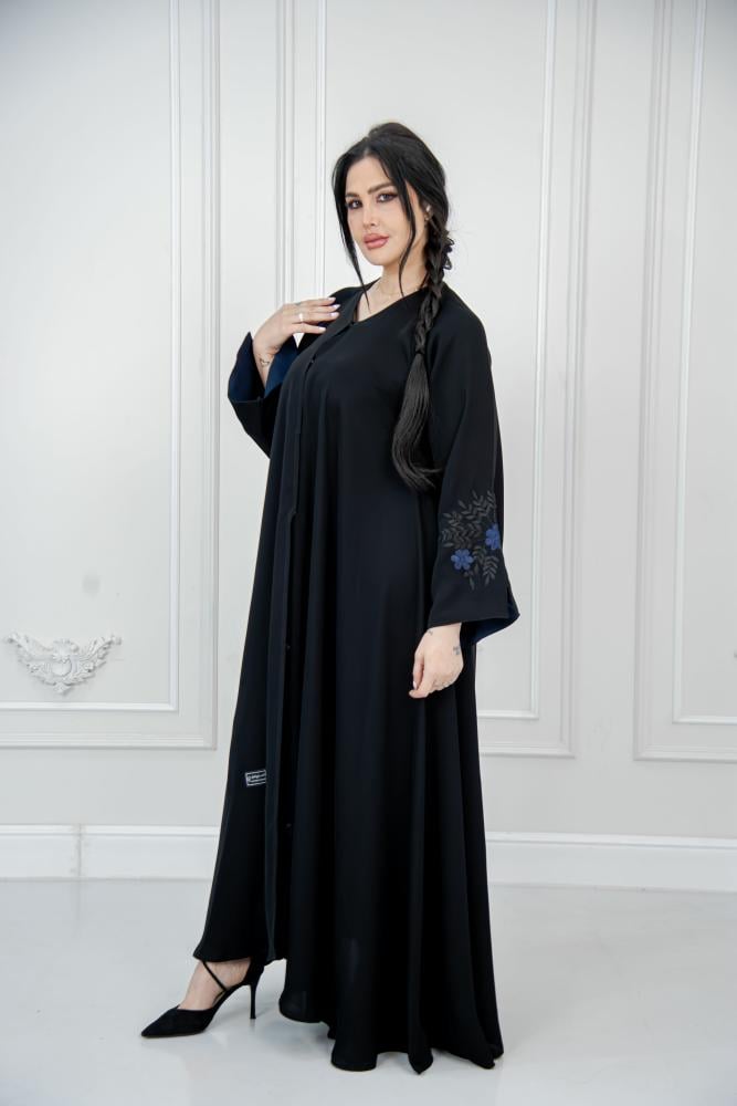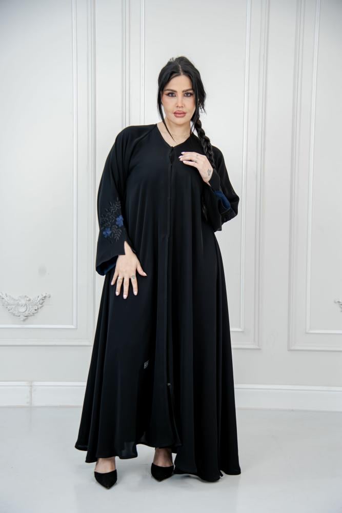 عباية كلوش تطريز كم كحلي – فخامة وأناقة عصرية