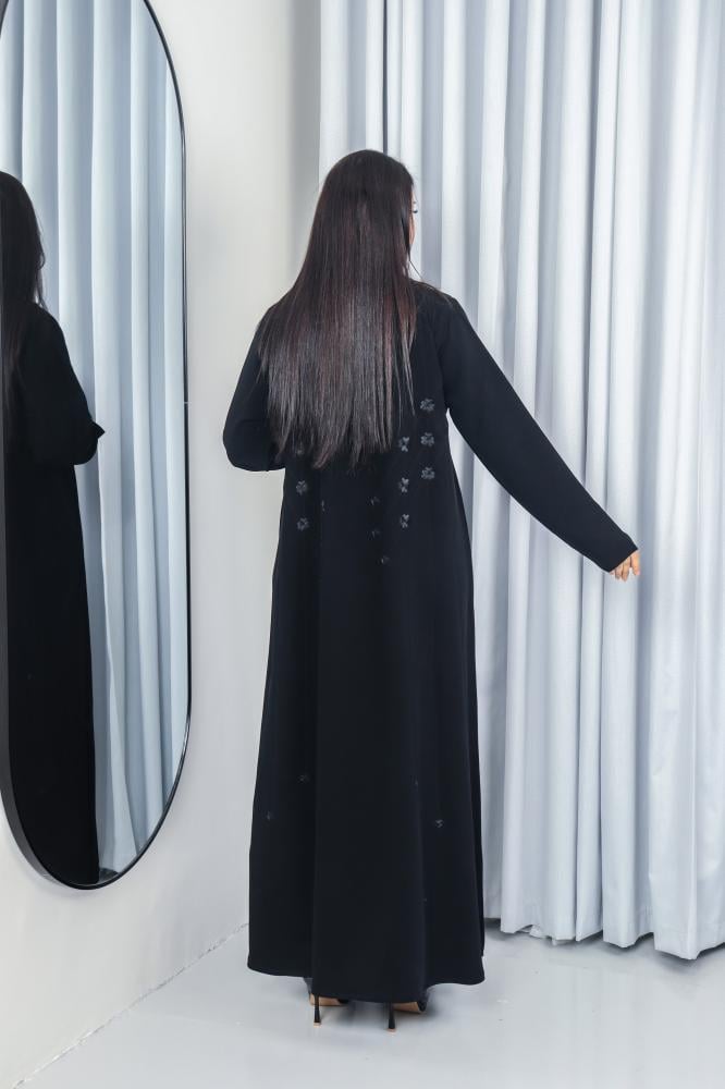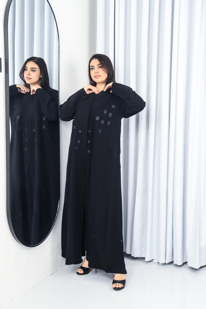 ✨ استمتعي بإطلالة متألقة مع عباية كريب ملكي بتطريز ستار ناعم يضفي لمسة فاخرة على التصميم الكلاسيكي.