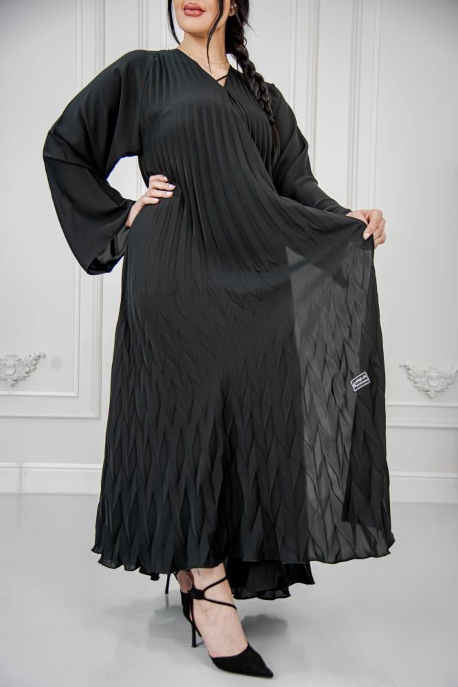 تأتي العباية بتقفيلة زرار كامل لسهولة الارتداء والتحكم، مما يجعلها خياراً عملياً وأنيقاً لمختلف المناسبات اليومية والخاصة.